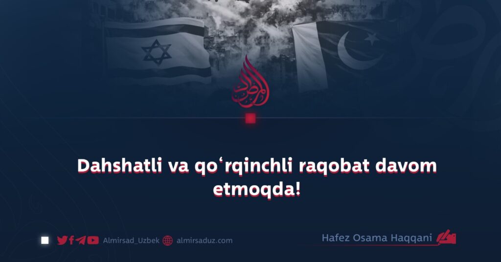 Goʻyo insoniyat vijdoniga ikkita qora soya yopirilgandek. Isroil va Pokistonning har biri oʻz maydonida begunohlar qoniga belangan yoʻldan qadam tashlamoqda; bu shunday yoʻlki, unda na sharaf bor va na insoniylik, u faqat mazlumlarning faryodi va nolasi bilan taniladi.