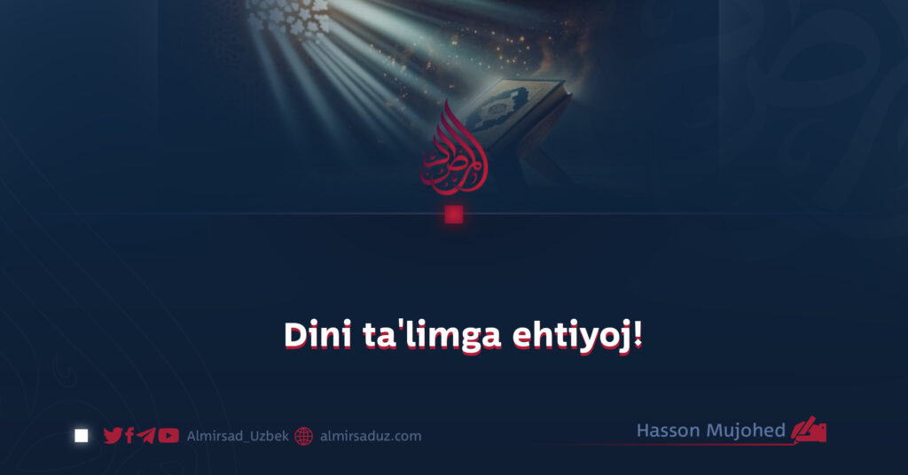 Ammo bizning zamonda diniy bilimimiz juda oz. Tafsilotli ilmni qo‘ying, hatto imonning zaruriy asoslarini ham to‘liq bilmaymiz. Namoz haj ro‘za, zakotni ham ko‘pchilik to‘g‘ri ado etmayapti. Jamiyatimiz ilm tanqisligidan falaj bo‘lgan  savdo-sotiqdan tortib, shaxsiy va ijtimoiy hayotgacha ko‘p ishlar g‘ayrislomiy tarzda yurmoqda.