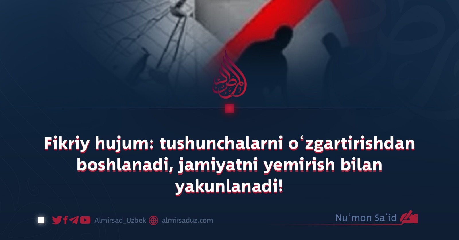 Xulosa shuki, fikriy urushda asosiy nishon xalqning tafakkuridir. Chunki bir millatning asosiy e’tiqodlari qulagan zahoti, u millat yo‘lini yo‘qotadi va oson boshqariladigan nishonga aylanadi. Shu sababli G‘arb doimo erkinlik va demokratiya kabi chiroyli shiorlar ortida fikriy dasturlarni ilgari surib, jamiyatlarga singib boradi.