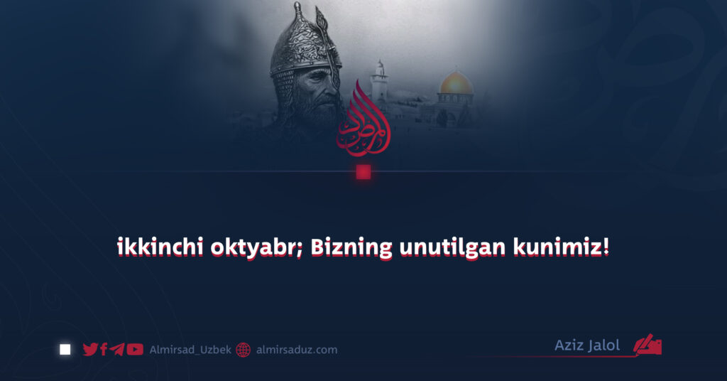 Tarixda shunday kunlar borki nafaqat musulmonlar balki butun insoniyat ular bilan faxrlanadi. Ana shunday kunlardan biri milodiy 1187-yil 2-oktyabr sanasidir. O‘sha kuni Salahuddin Ayyubiy (rahmatullohi alayh) musulmonlarning yaralangan qalblariga shifo berdi Baytul-Maqdisni zolim salbchilarning changalidan ozod qildi va Islom bayrog‘ini Aqso osmonlarida hilpiratdi.