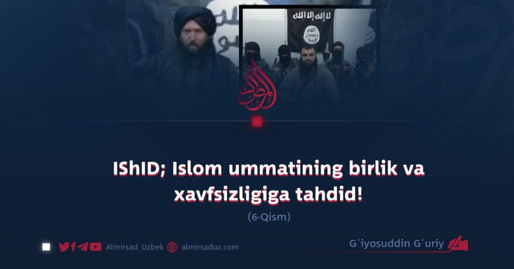 O‘sha kunlarda zamonamizning mashhur salafiy jihodiy olimi Abu Muhammad al-Maqdisiy shunday degan edi: Allohga qasamki IShID kabi yolg‘onchi badaxloq va xoin guruhni ko‘rmaganman. Xullas bu manfur guruh xalifalikni e’lon qilgach barcha jihodiy guruhlarga tarqatilish buyurildi va hamma Bag‘dodiyga bay‘at qilishga majbur qilindi.