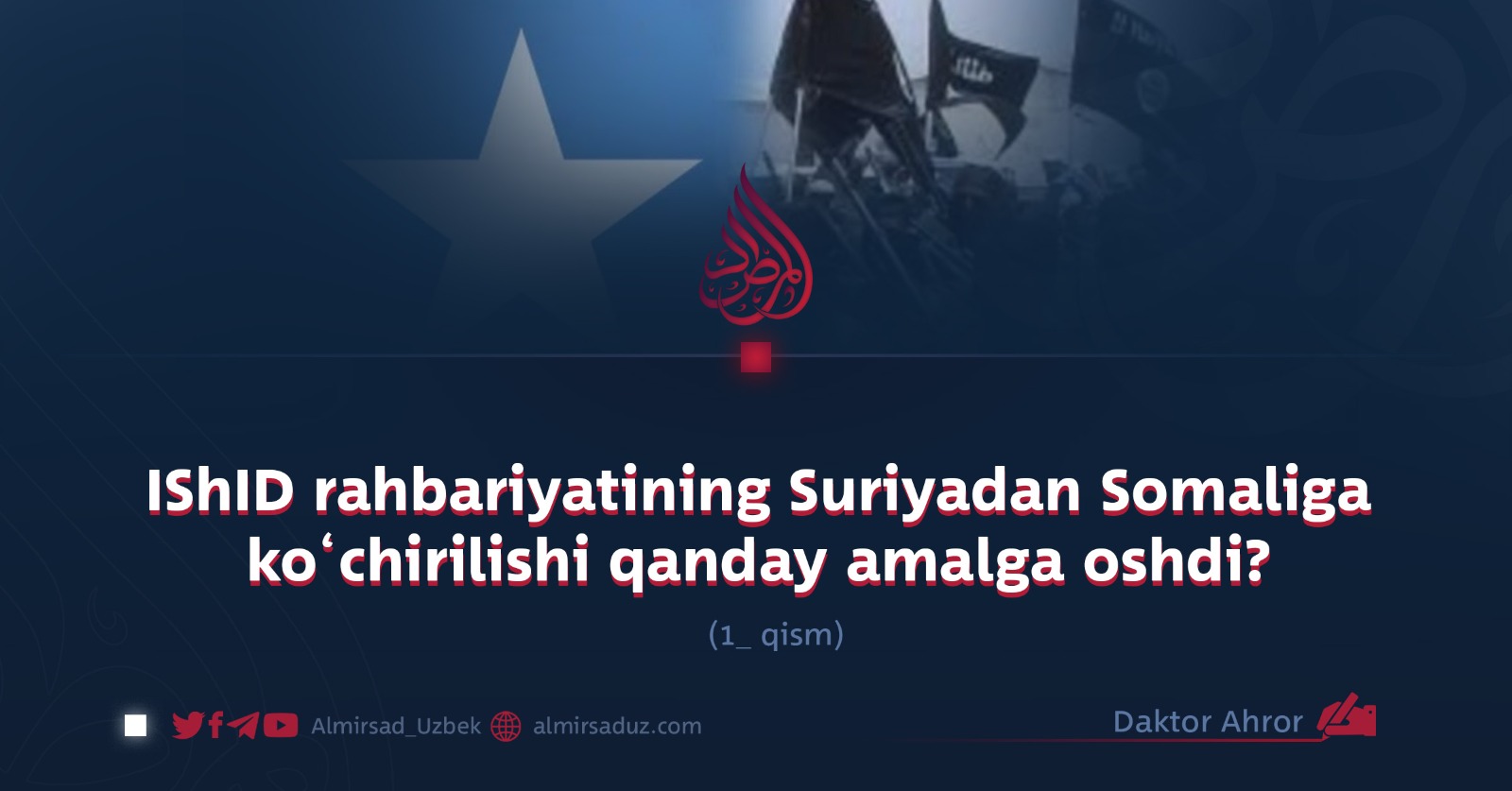 Markazi avval Suriya (Shom)da joylashgan ISHID guruhi yangi ma’lumotlarga ko‘ra o‘z markazini Somaliga ko‘chirgan. Bu ko‘chirish chuqur maslahatlar va har tomonlama tahlillar asosida amalga oshirilgan. Ayrim ishonchli manbalarga ko‘ra, bu jarayonda iroqlik ISHID a’zolari muhim rol o‘ynagan. Ularning maqsadi Shomdagi, internet orqali boshqarilgan va iroqliklarga yetarli imkoniyat bermagan rahbarlik tizimini Shom guruhidan olib, afrikalik ISHID a’zolariga topshirish bo‘lgan.