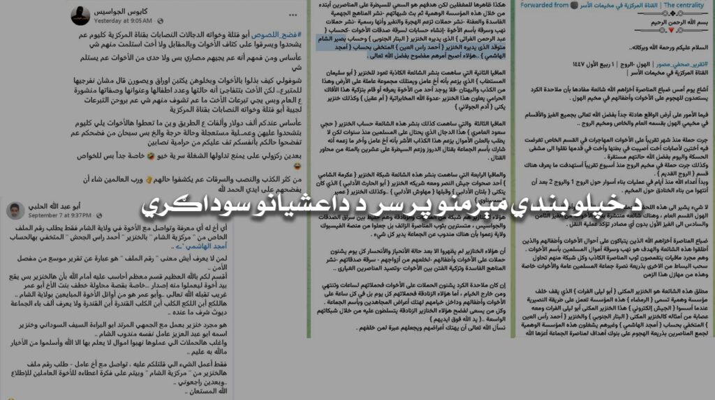 «Xalifalarning qullarini fosh qiluvchi kanal» nomli xavorijga qarshi faoliyat yurituvchi bir manba o‘z hisoblarida ISHIDchilarga aloqador bir telegram kanalining postini e’lon qilgan. U kanal o‘zini ISHIDchilar Shom viloyatidagi qamoqxona lagerlarining markaziy kanali sifatida tanishtirgan. O‘sha postda ba’zi ISHIDchilar al-Hol va Roj lagerlari nomidan pul yig‘ib, uni shaxsiy manfaatlari uchun ishlatayotganlikda ayblanganlar.
