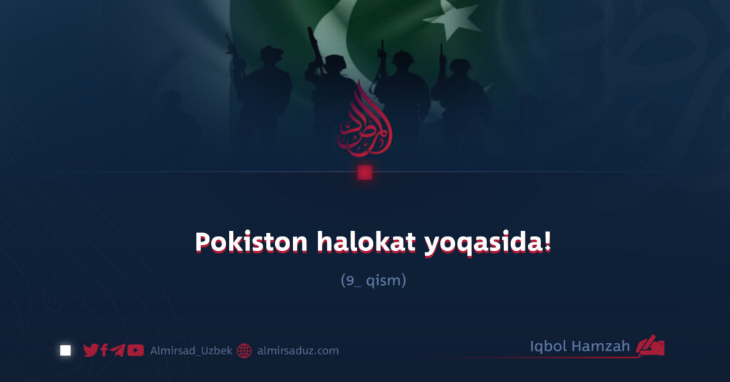 Bugun esa har kuni aynan shu musulmonlar o‘z haqlarini talab qilish uchun qurolli kurashga qo‘l urayotgan bir paytda, Pokiston generallari xatolarini tan olish o‘rniga aybni qo‘shni davlatlarga yuklamoqdalar va bu mazlumlarning boshqa mamlakatlarning qo‘zg‘atishi bilan Pokiston xavfsizligini izdan chiqarayotganini da’vo qilmoqdalar.