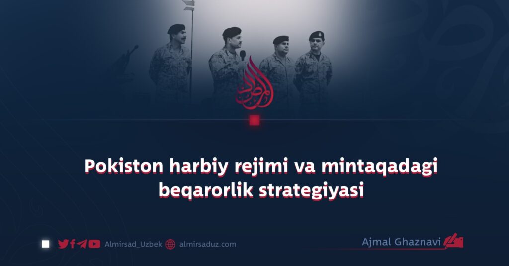 Jahon siyosatida davlatlarning kuchi nafaqat qurollar va harbiy qo‘shinlar soni bilan, balki ularning strategik aqlliligi, mintaqaviy barqarorlikdagi roli va millatlararo ishonch yaratish mahorati bilan o‘lchanadi. Ammo qachonki bir rejim barqarorlik me’morligi o‘rniga, natinchlik o‘yinlari maydoniga kirsa, uning natijasi uzoq muddatli bo‘hronlar (inqirozlar) sifatida namoyon bo‘ladi. Pokiston harbiy rejimi o‘n yillar davomida shunday bir yondashuvning timsoli bo‘lib kelgan.