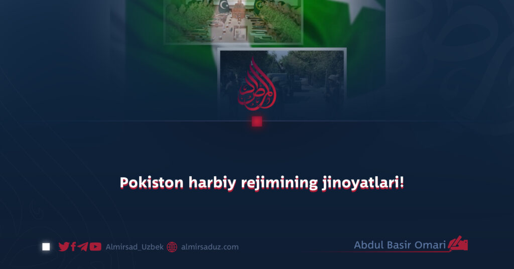 Pokiston harbiy rejimi tarix davomida keng ko‘lamli jinoyatlar, zo‘ravonliklar, jinoyatlar va vahshiyliklarni sodir etgan. Bu jinoyatlar ichki va tashqi maydonda amalga oshirilgan bo‘lib, nafaqat islomga, balki insoniyatga ham uyat bo‘ladi. Bu zulmning qurbonlari ko‘pincha musulmonlar va islomning haqiqiy tarafdorlaridir. Ayniqsa ularning musulmonlarga qarshi harakatlari mashhur bo‘lib, dunyo kufrchilari buning siyosiy va razvedkaviy foydasidan foydalanishgan.