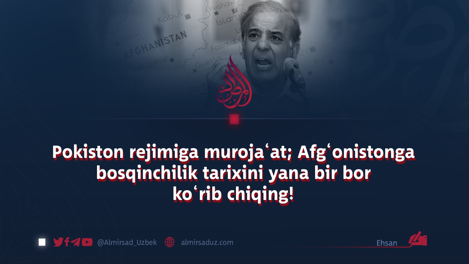 Pokiston bilishi kerakki, afg‘onlarning sabrini sinash sherning dumiga tegish bilan barobar. Agar Pokiston rejimi tarixni bilmasa, o‘z rahbarlaridan so‘rasin: bu yurtga bostirib kirganlarga nima bo‘lgan? Iskandar Makedoniy keldi mag‘lub bo‘ldi; Chingizxon keldi halok bo‘ldi; inglizlar keldi qochib ketdi; Sovetlar keldi xor bo‘ldi; Amerika keldi sharmanda holda qaytdi. Endi Pokiston o‘zining cheklangan qudrati bilan shu yo‘lni davom ettirmoqchimi? Mayli, urinib ko‘rsin, ammo bilsin: bu yo‘lning oxiri qabristondir.