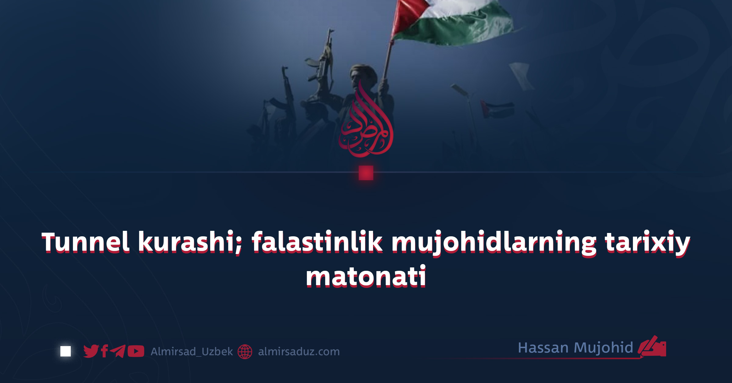 Bugun G‘azo tunnellari xalq tomonidan strategik va yengilmas qurol sifatida tan olinmoqda. Bu yer ostida yashiringan bir olamdir; Falastin mujohidlarining yillar davom etgan azob-uqubatlari, matonati va sokin jihodi aynan shu olam bag‘rida mujassam. Qattiq qamallar, uzluksiz kuzatuvlar va nihoyatda og‘ir sharoitlarga qaramay, bu mardlar tunnellarni qazidilar, kengaytirdilar va nihoyat ularni jang maydonida ishga soldilar.