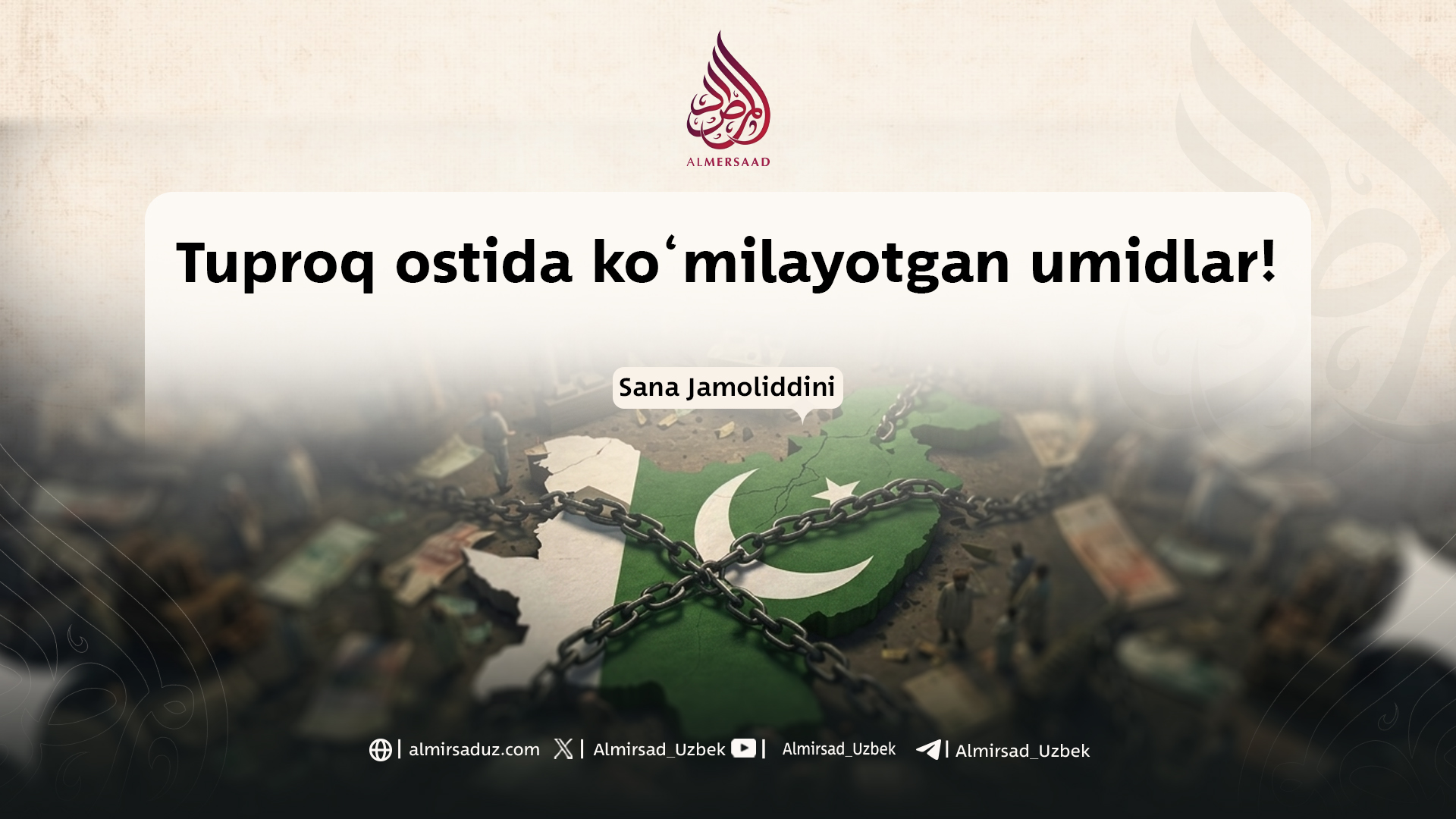 Bir kuni BBC’da Pokiston muammolari haqida bahs ketayotgan edi va odamlar o‘z fikrlarini erkin bayon qilayotgan edilar. Shu paytda ulardan biri juda qiziqarli gap aytdi. Garchi u tashqi tomondan jozibali ko‘rinsa-da, aslida juda qayg‘uli edi. U shunday dedi: Pokistonda deyarli har ikki-uch kishidan biri global vaziyatga qiziqadi; qayerga qarasang, odamlar xalqaro siyosat haqida gapiradi va fikr bildiradi. Ammo o‘z ahvoli va oilaviy muammolaridan yo bexabar, yo ularga mutlaqo beparvo bo‘lib qolgan.