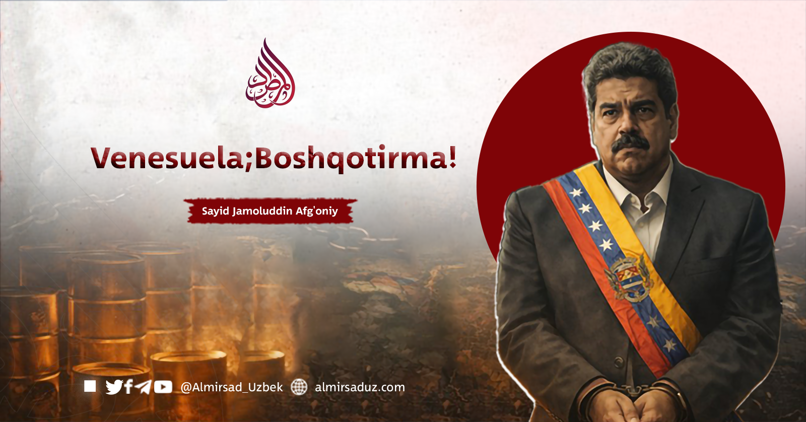 So‘nggi kunlarda Amerika Qo‘shma Shtatlari prezidenti Janubiy Amerikada joylashgan Venesuela davlatining prezidentini va uning rafiqasini kunduzi o‘z saroyidan sudrab chiqarib, zanjirband holda hibsga olish haqida buyruq berdi. Ushbu buyruq ortidan AQShning {Delta Force} maxsus kuchlari rejalashtirilgan amaliyotni amalga oshirib, ularning har ikkisini qo‘lga oldi va Vashingtonga olib ketdi. Bu voqea, rostini aytganda, butun dunyoni larzaga soldi va xalqaro miqyosda katta shov-shuvga sabab bo‘ldi; Xitoydan Marokashgacha, Moskvadan Singapurgacha hamma bu manzaradan hayratda qoldi. Ba’zilar sust, ba’zilar esa keskin munosabat bildirdi, ammo shunga qaramay, hech qaysi tomondan bu hodisaga munosib va yetarli javob berilmadi.